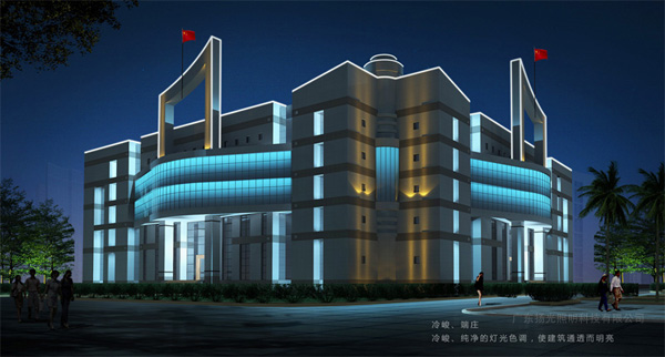 本次設(shè)計范圍為行政辦公建筑,針對建筑功能特點,我們的燈光定位為簡潔、高雅,通過純凈、明亮的燈光,來體現(xiàn)公正、開放、廉明的政府形象。