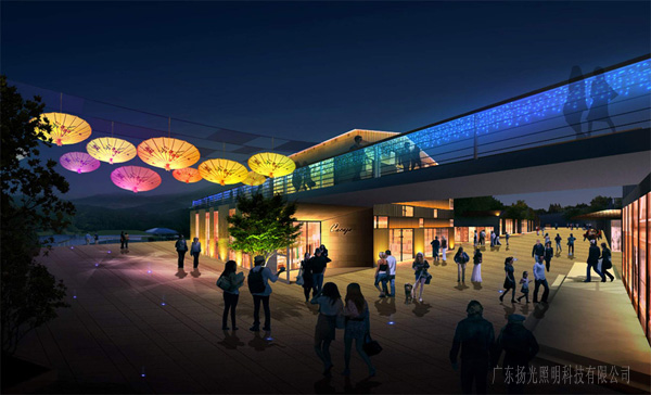 整體以暖色調(diào)為主,局部選擇彩色或高色溫光源點(diǎn)綴,凸顯熱鬧繁華的商業(yè)氣氛。通過對項(xiàng)目景觀的分析,結(jié)合建筑風(fēng)格,系統(tǒng)的規(guī)劃照明水平、控制亮度等級對于表現(xiàn)項(xiàng)目主次、引導(dǎo)游客、豐富夜景、節(jié)約能源顯得尤為重要。