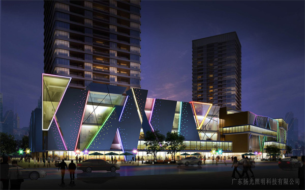 裙樓以商業(yè)內(nèi)透體現(xiàn)其營運(yùn)功能,渲染熱鬧與繁華的商業(yè)氣氛及現(xiàn)代時尚的結(jié)構(gòu)特征。局部選用彩色光源點綴,打造耀眼、繽紛的燈光氛圍。