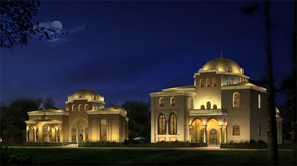 土耳其館及湯屋的屋頂形式體現(xiàn)著伊斯蘭建筑的特色。傳統(tǒng)的土耳其建筑受拜占庭建筑的影響,在方形基座上搭建一個(gè)完整的半圓穹頂。采用券拱的形式,而這種穹頂高高在上一只獨(dú)大的構(gòu)圖和建筑形制,形成土耳其館有特色的穹頂。