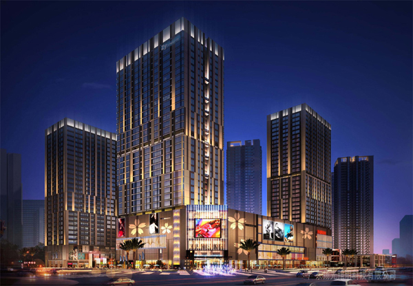 建筑裙樓外圍的燈光從觀看和感受入手,以體量為單位,強(qiáng)調(diào)大面積光感給人和車流的視覺沖擊,從視覺的角度吸引消費(fèi)群體。