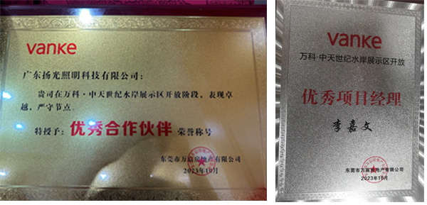 20天!僅用了20天就完成了萬(wàn)科.中天世紀(jì)水岸(龍灣新城花園)展示區(qū)泛光照明工程,在公司各部門的共同努力下,無(wú)論是時(shí)間節(jié)點(diǎn),還是工程的質(zhì)量都得到業(yè)主方的認(rèn)可。被業(yè)主方評(píng)為“優(yōu)秀合作伙伴”,項(xiàng)目負(fù)責(zé)人也被評(píng)為“優(yōu)秀項(xiàng)目經(jīng)理”。